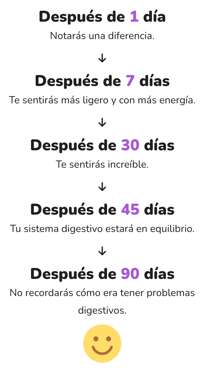 No. Todo lo que necesitas es 1 cápsula al día para restablecer el equilibrio de tu sistema digestivo.